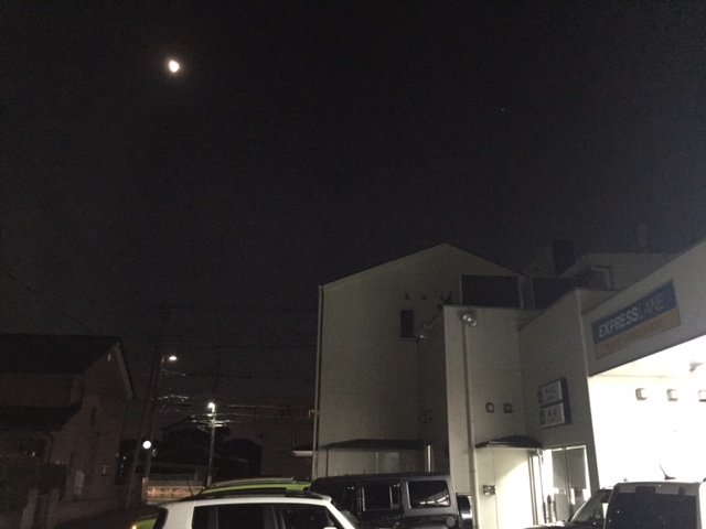 今夜もサービス工場からの月が綺麗です。